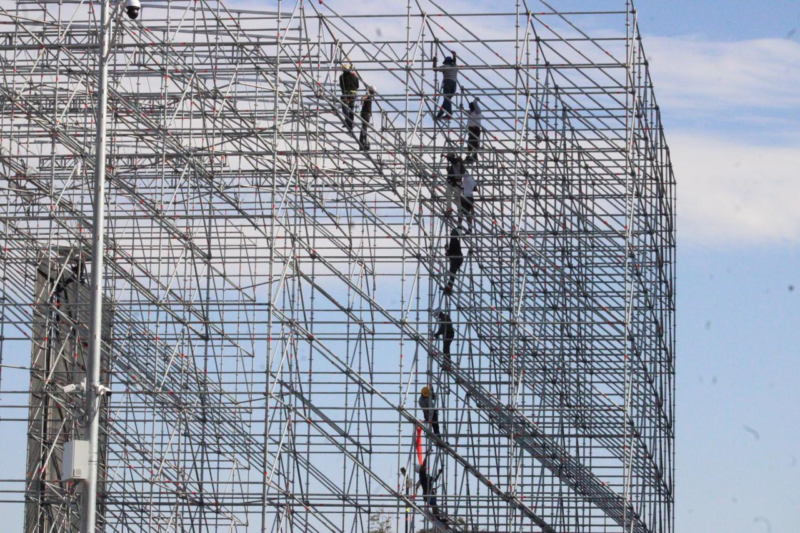El trabajo de desmontaje, que implica labores de altura y riesgo, comenzó desde las primeras horas del día. Equipados con arneses de seguridad, los trabajadores se encuentran colgados a varios metros del suelo, retirando las estructuras que formaron parte del espectáculo del icónico cantante puertorriqueño. La tarea requiere precisión y cuidado, ya que deben maniobrar entre las luces, pantallas y otros equipos escénicos utilizados durante la presentación.