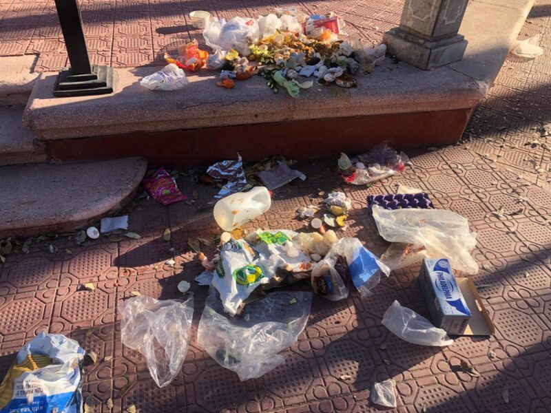 Desorden y Basura en la Plaza Hidalgo de Chihuahua
