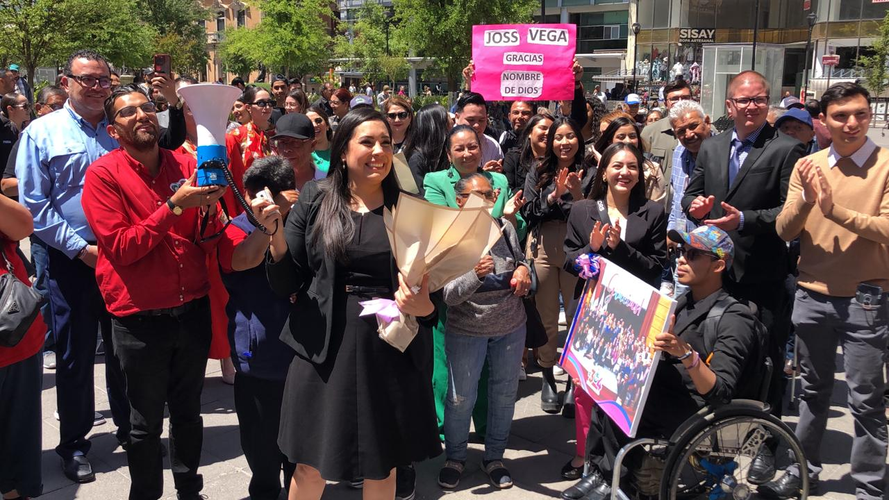 En un emotivo acto de despedida, Joss Vega, regidora del PAN en Chihuahua, se despidió de su cargo en la Plaza de Armas acompañada de mariachi y el calor de un grupo de personas, incluyendo a sus familiares.