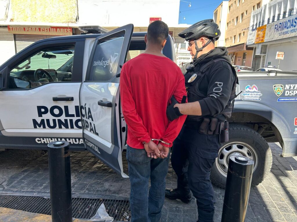 Un joven fue detenido la mañana de este jueves en calles del Centro Histórico de la ciudad de Chihuahua, luego de que elementos de la Policía Municipal lo interceptaran por presuntamente consumir sustancias ilegales en la vía pública.