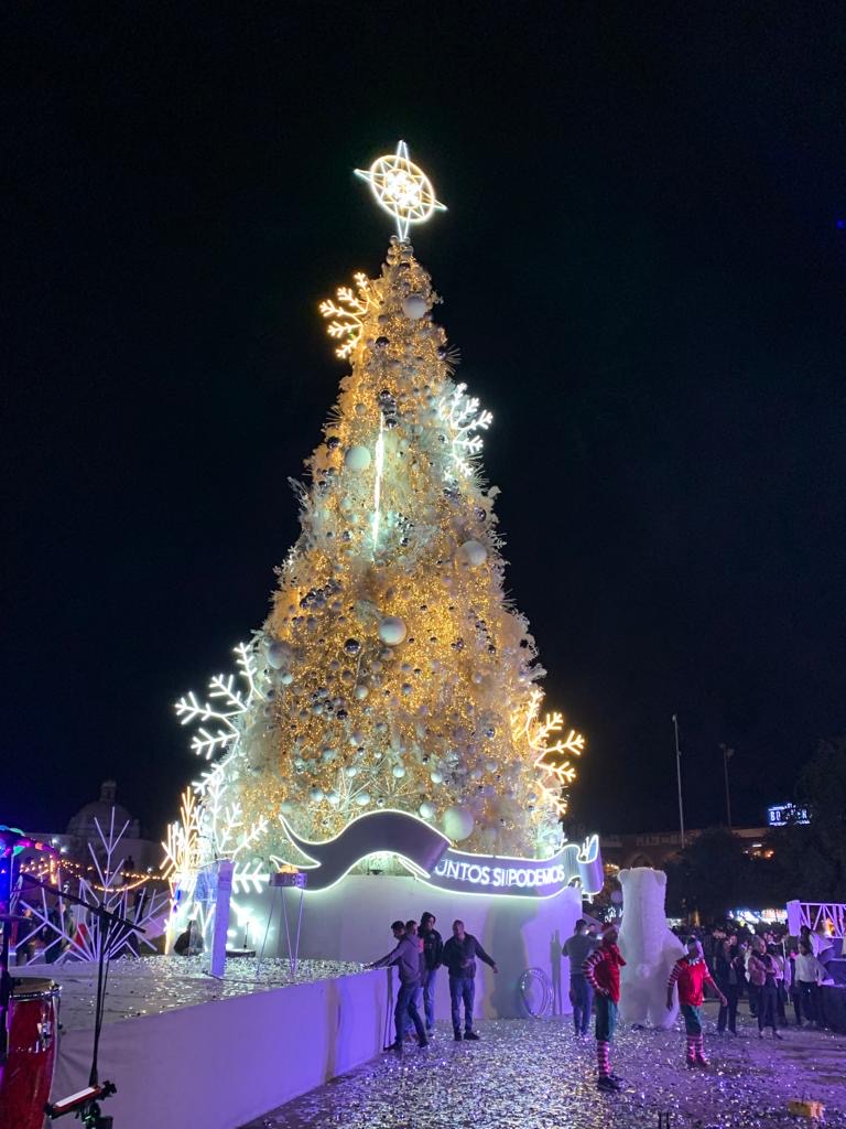 Disfrutan cientos el encendido del árbol en el Centro