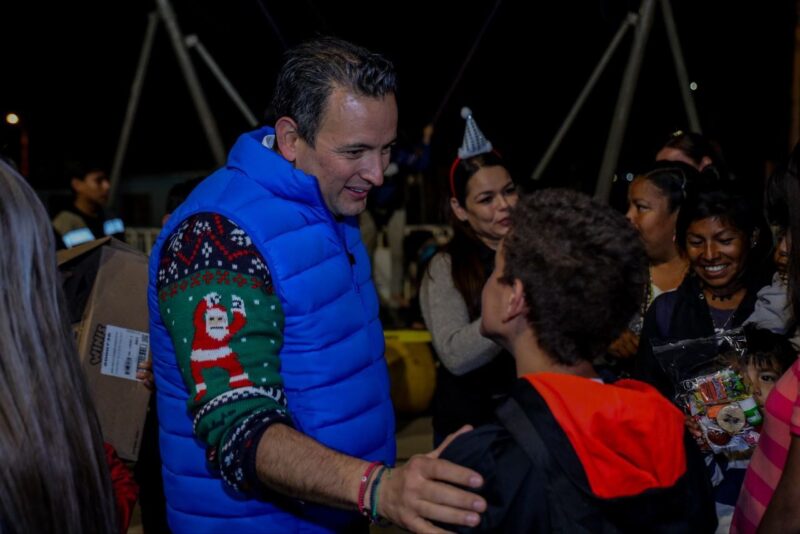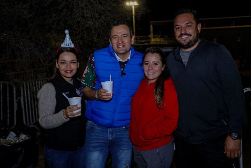 Chihuahua, Chih. A 21 de diciembre de 2023.- El alcalde de Chihuahua, Marco Bonilla y la presidenta del DIF Municipal, Karina Olivas, compartieron un momento de alegría con las familias que viven en los alrededores del Centro de Desarrollo Familiar (CEDEFAM) Valle Dorado, en una posada navideña.
