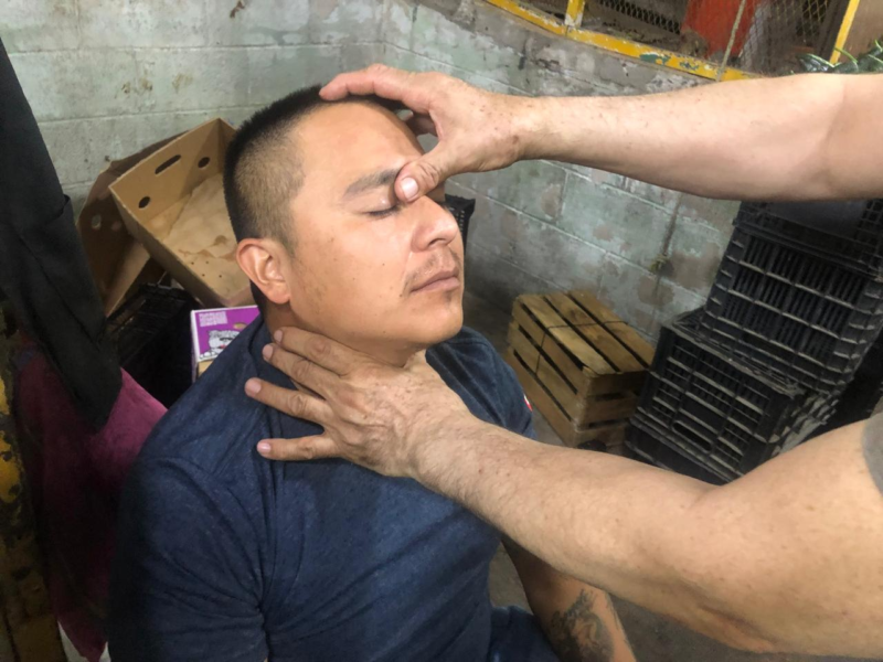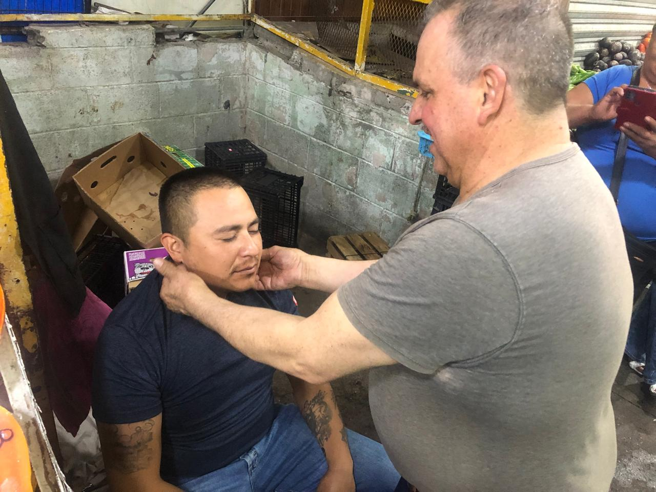 Al mediodía de este viernes, entre el aroma a chorizo fresco y los montones de miel artesanal, Hipólito Villa Chavira, mejor conocido como don Polo, atiende a un cliente en su puesto del Mercado Popular Chihuahua. Mientras masajea los hombros de un hombre, explica con sencillez su doble oficio: vender productos locales y ofrecer terapias manuales para aliviar males como “torciaduras, falsiaduras [dislocaciones] y hasta anginas inflamadas”.