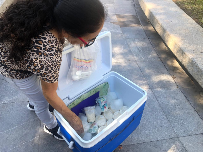 “Más de 35 años”, responde con orgullo Doña Elvira cuando se le pregunta sobre el tiempo que lleva en este oficio. Dos o tres veces por semana, con su característico carrito y su hielera, recorre las calles del primer cuadro de la ciudad ofreciendo sus deliciosas creaciones.