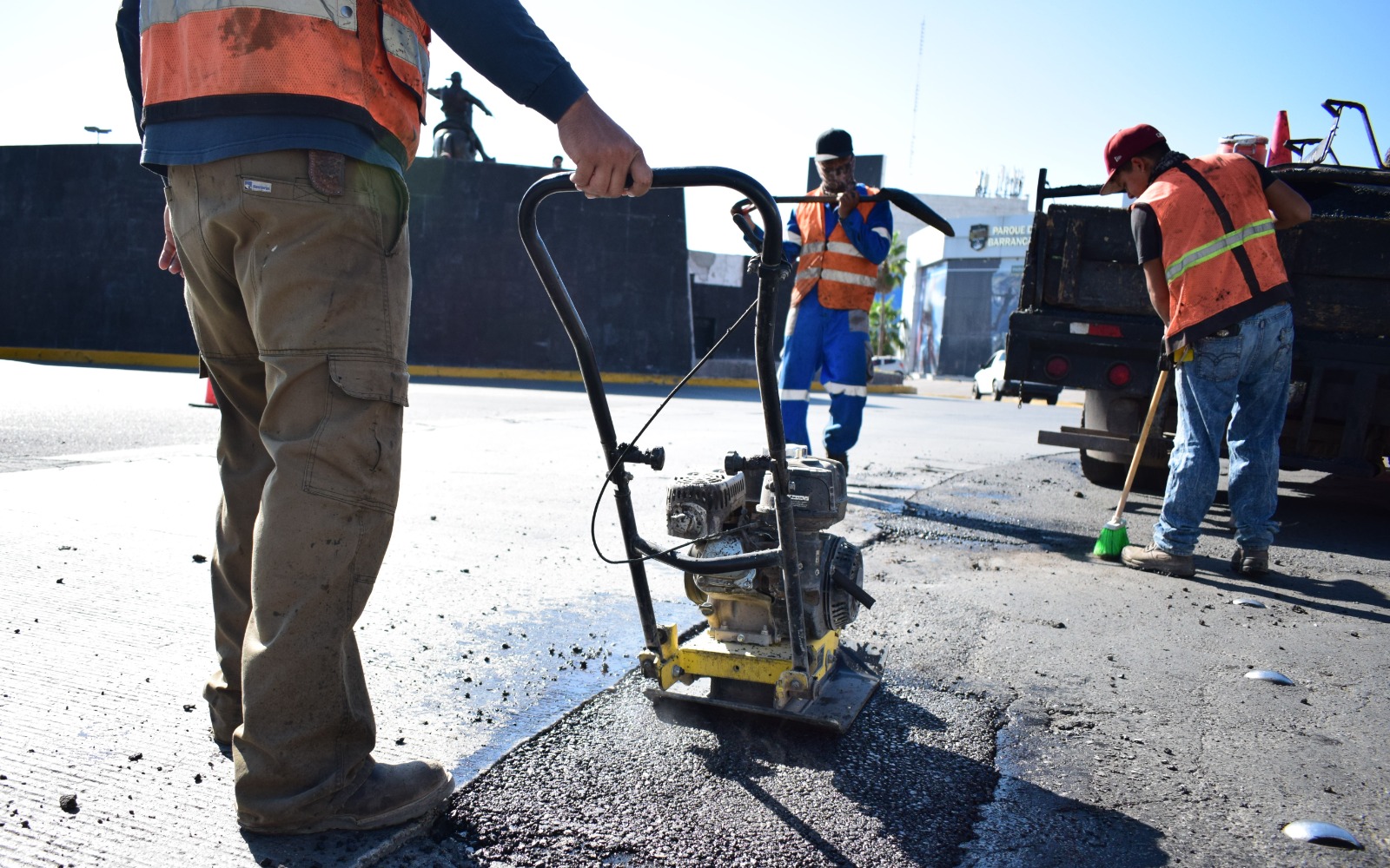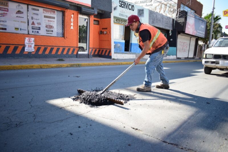 Se exhorta a seguir tomando precaución por la zona donde intervienen las cuadrillas de bacheo por las maniobras que son necesarias para realizar los trabajos, por lo que pide paciencia al circular por el área y respetar las indicaciones del personal.