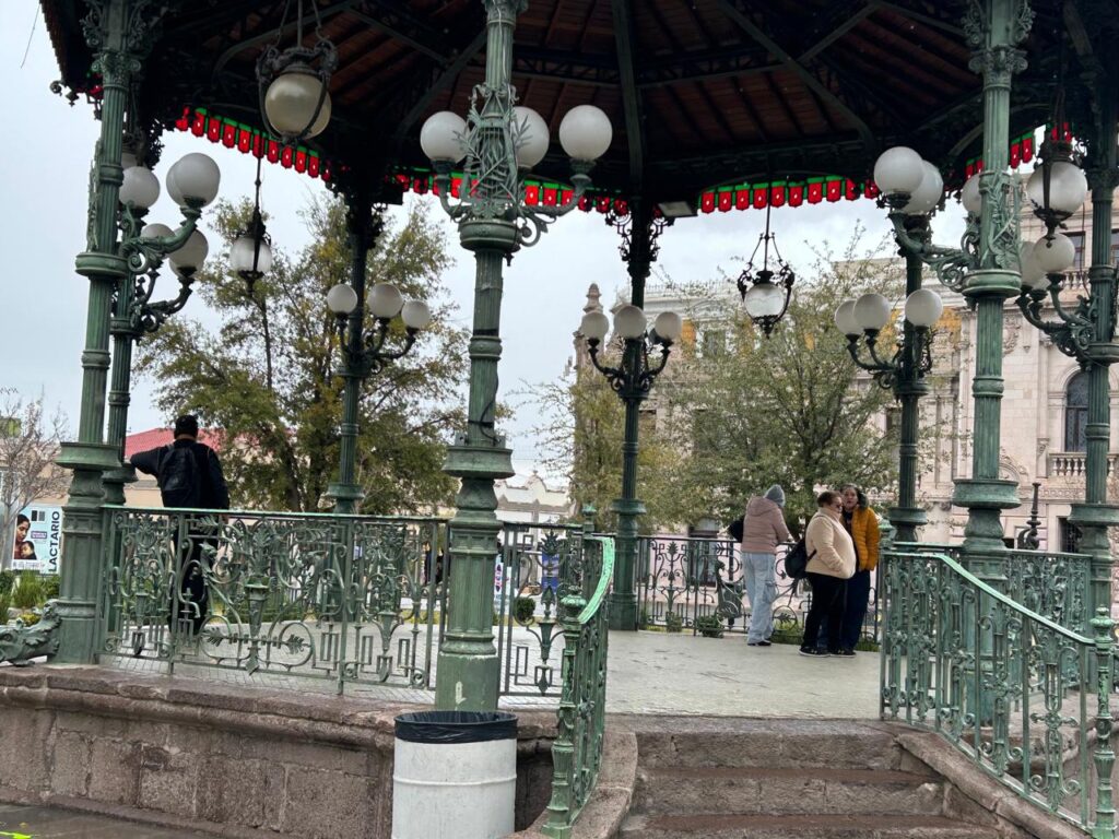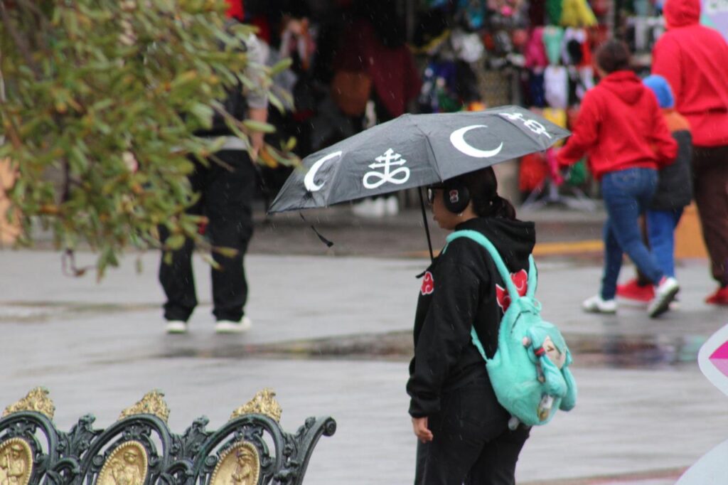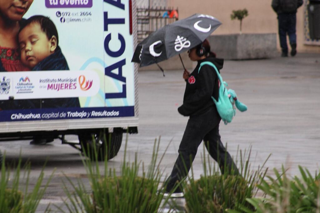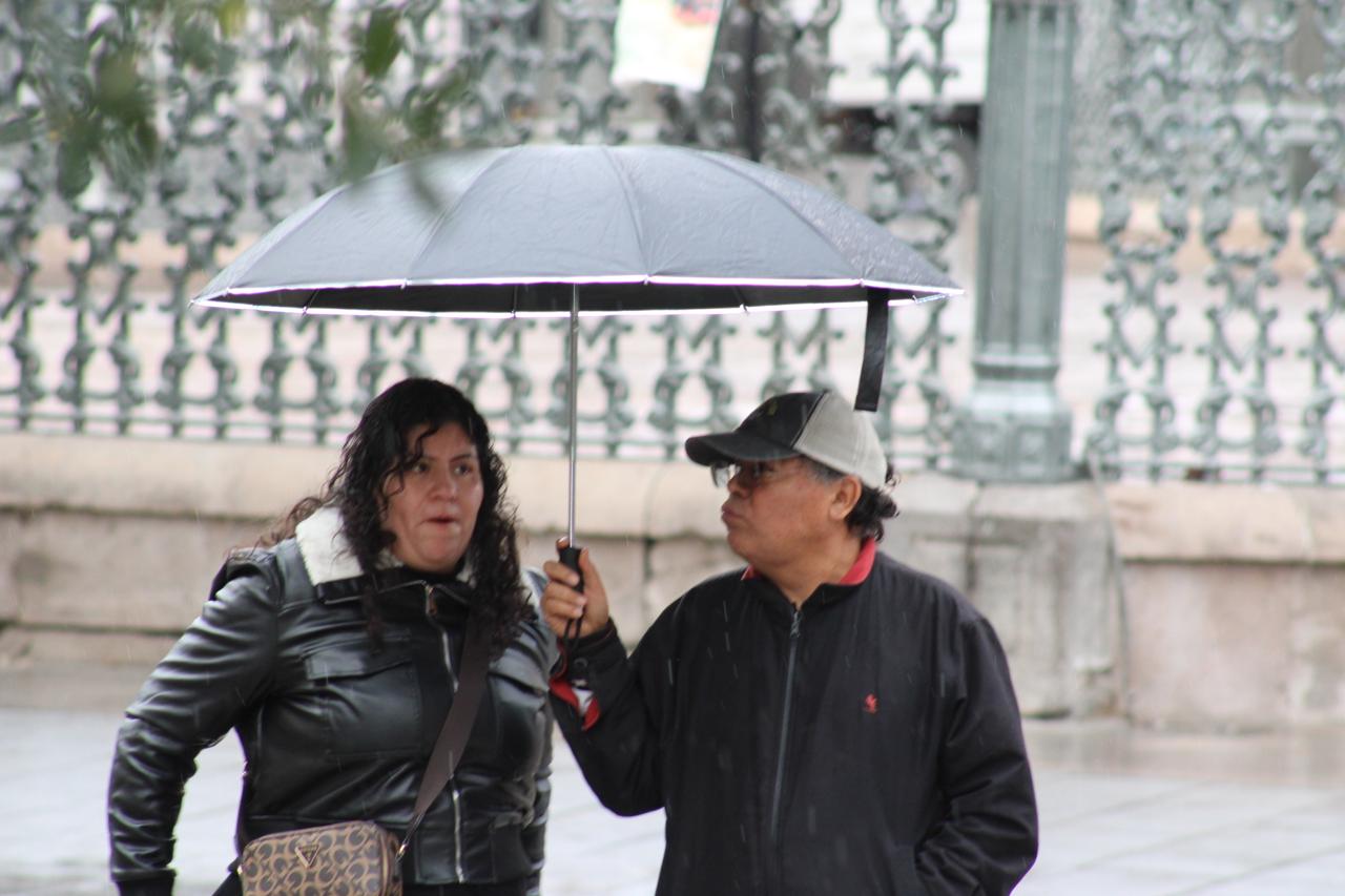 Hoy, los habitantes del centro de Chihuahua Capital fueron sorprendidos por lluvias ligeras desde la mañana, como parte de los efectos de la tercera tormenta invernal de la temporada. Algunos ciudadanos se resguardaron en el kiosco central de la Plaza de Armas, mientras otros sacaron sus paraguas para continuar con sus actividades.