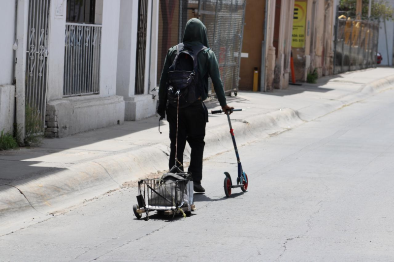 En una muestra de ingenio y creatividad, un chihuahuense fue visto hoy en las calle 5ta y Aldama, en el centro de Chihuahua, utilizando un método poco convencional para transportar sus objetos. Este individuo había adaptado un carrito con ruedas para poder arrastrarlo mientras va sobre su scooter, amarrando con una soga el carrito a su mochila demostrando una vez más que la creatividad e ingenio del mexicano no tiene límites.