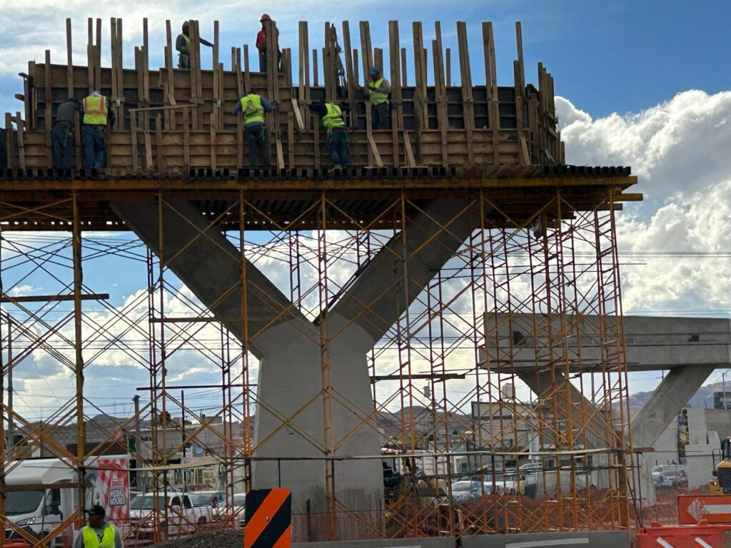El Gobierno Municipal de Chihuahua, a través de la Dirección de Obras Públicas, informó que la construcción del Paso Superior en la vialidad Los Nogales y avenida de las Industrias registra un avance del 40% en su desarrollo total. Durante una supervisión reciente, el alcalde Marco Antonio Bonilla Mendoza destacó que los trabajos de instalación de trabes, armado de rampas y colado de columnas avanzan según lo programado, lo que permite visualizar la estructura final del puente, diseñado para mejorar la movilidad en el norte de la ciudad.