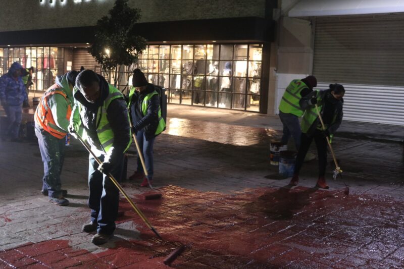 Chihuahua, Chih., a 12 de diciembre de 2023.- Con el objetivo de mejorar la imagen urbana para los miles de visitantes al Centro Histórico, el Gobierno Municipal de Chihuahua, a través de la Dirección de Servicios Públicos Municipales, llevó a cabo trabajos de pintura en las banquetas de la zona peatonal de la calle Libertad.