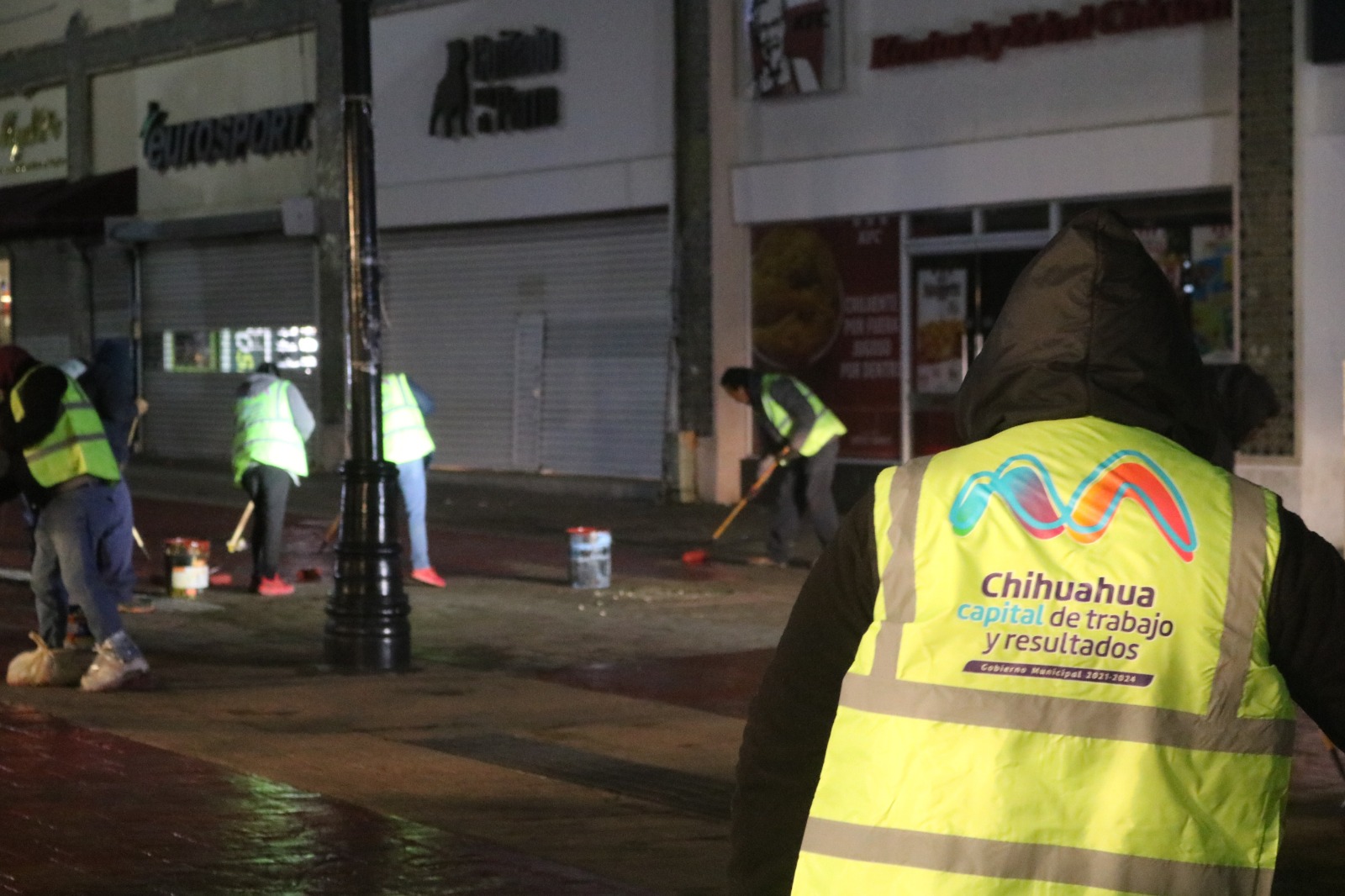 Chihuahua, Chih., a 12 de diciembre de 2023.- Con el objetivo de mejorar la imagen urbana para los miles de visitantes al Centro Histórico, el Gobierno Municipal de Chihuahua, a través de la Dirección de Servicios Públicos Municipales, llevó a cabo trabajos de pintura en las banquetas de la zona peatonal de la calle Libertad.