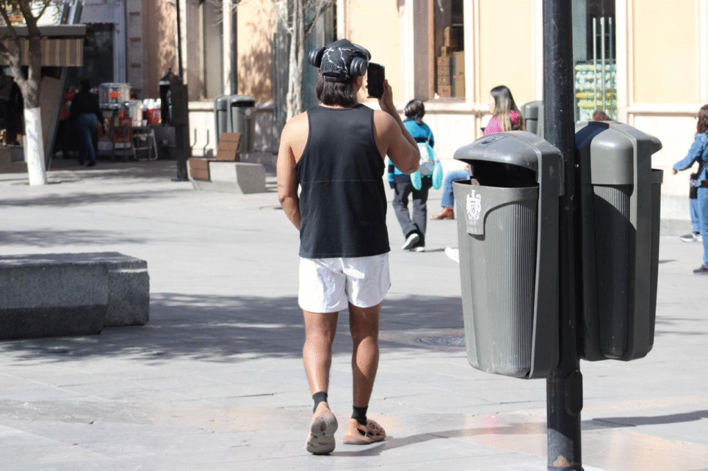 El clima volvió a hacer honor al dicho popular. Esta mañana, en la Plaza de Armas del Centro Histórico, el contraste era evidente: mientras algunas personas caminaban abrigadas con chamarra, sudadera o suéter, otros —principalmente jóvenes y turistas— recorrían el lugar en short y playera, disfrutando del sol.