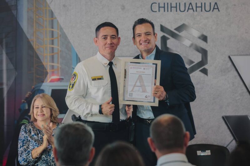 Chihuahua, Chih. A 26 de agosto de 2024.- El alcalde Marco Bonilla y el director de Seguridad Pública Municipal, Julio César Salas González, hicieron entrega a policías y bomberos, la primera etapa de las instalaciones del Instituto Superior de Seguridad Chihuahua (ISSCUU), donde los elementos podrán capacitarse en rescate vertical en caso de incendio, así como tácticas policiales de intervención y rescate en la casa táctica.