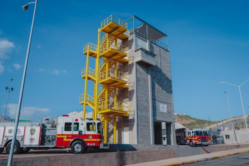 Por citar dos beneficios de estas nuevas instalaciones, el presidente Municipal explicó que el modelo de la torre para bomberos, es igual a la que tienen los elementos de Alburquerque en Nuevo México, donde en cada piso se pueden simular diferentes escenarios, como un aula de escuela, una oficina o casa habitación a fin que practiquen diferentes tácticas de rescate y combate del fuego. Resaltó el edil que toda el agua que se utilice durante los entrenamientos es recuperable, gracias al sistema de drenaje que lleva el líquido a una cisterna instalada en la parte de abajo de esta construcción.