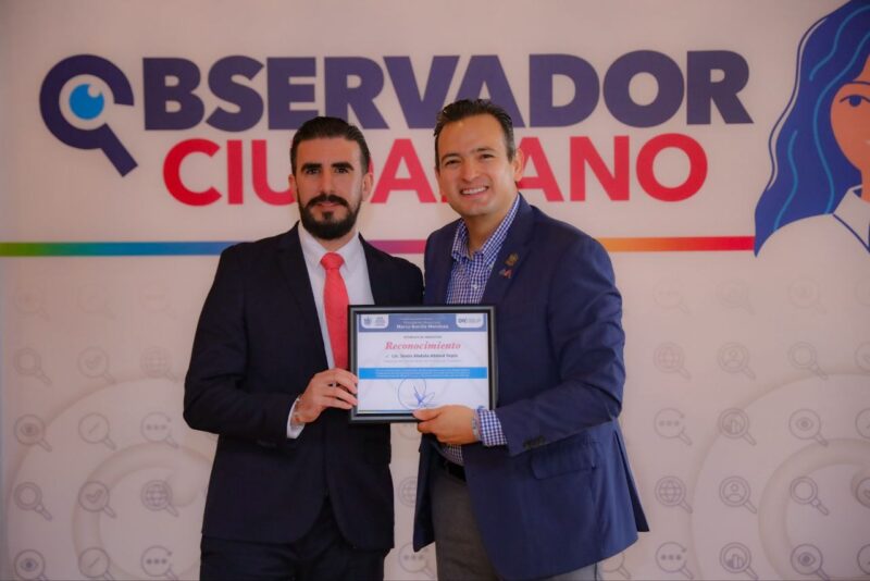 En el evento, el Edil Capitalino hizo entrega de un reconocimiento a Jesús Abdala Abbud Yepiz, integrante del Comité de Participación Ciudadana del Sistema Estatal Anticorrupción, por haber capacitado a las tres primeras generaciones de Observadores Ciudadanos.