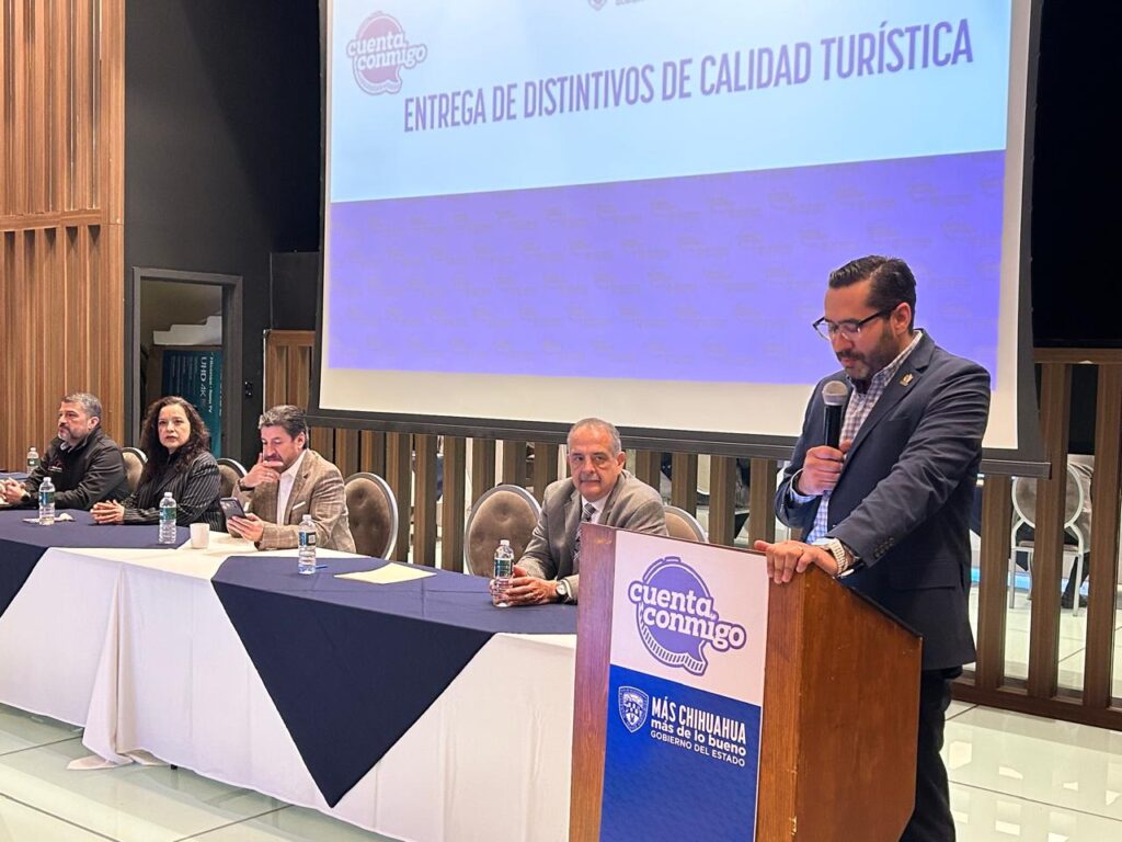 Autoridades estatales realizaron la entrega de más de 60 distintivos de calidad turística a empresas del sector en Ciudad Juárez, como parte de las acciones para fortalecer la calidad en los servicios que se ofrecen a visitantes y turistas.