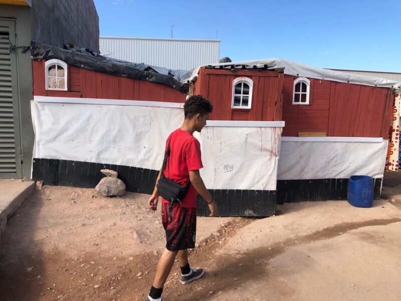 El grupo ha pasado tres días en la ciudad, varados por la falta de dinero para tomar el tren que los llevaría más cerca de la frontera. Durante este tiempo, han encontrado refugio en una pequeña casa ubicada en la calle Juan Pablo y 57, que, según nos cuentan, fue construida por un artesano local. Este gesto solidario les ha brindado un mínimo de seguridad en medio de la incertidumbre y el miedo constante a ser deportados.