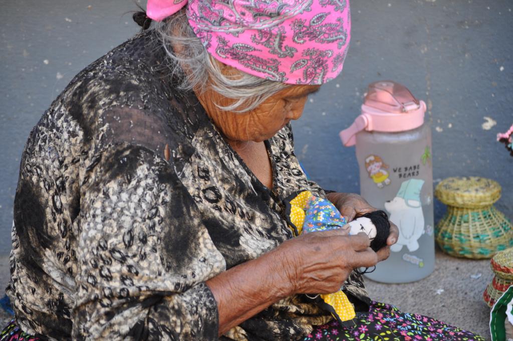 Las manos de una mujer artesana Rarámuri tejiendo historias en forma de muñecas. En cada puntada, se entrelazan siglos de tradición y cultura