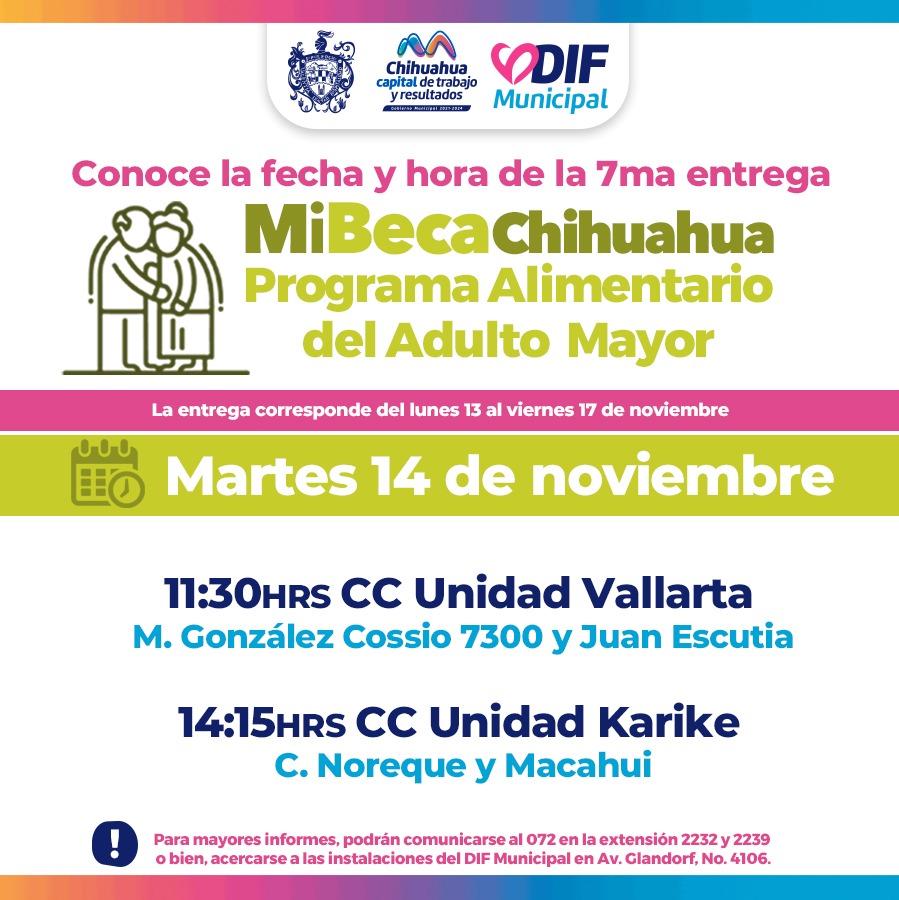 En atención al compromiso que el alcalde, Marco Bonilla, tiene con las y los adultos mayores de la Capital para garantizarles una mejor calidad de vida, el Gobierno Municipal, a través del DIF, informa que este martes 14 de noviembre las y los beneficiarios del Programa Alimentario del Adulto Mayor (PAAM) podrán acudir por su apoyo alimentario al CEDEFAM Vallarta, a las 11:30 am, y al centro comunitario Unidad Karike, a las 2:15 pm.