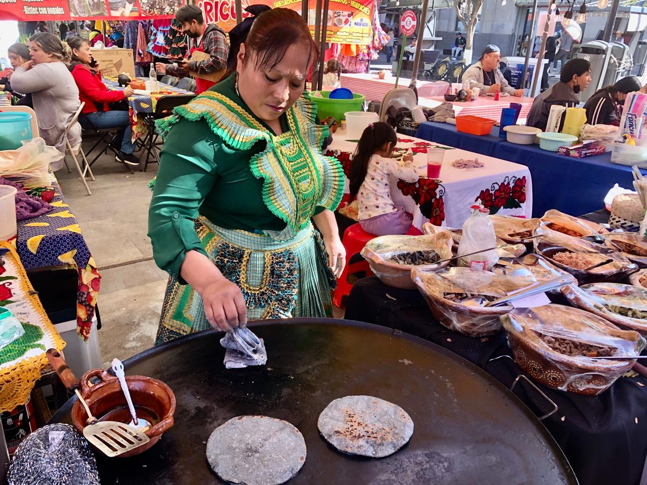 El Festival Sekáti Newárame (Hecho a Mano), que se realiza en la Plaza de Armas del 28 al 30 de noviembre, sigue atrayendo a chihuahuenses y visitantes con una oferta única de artesanía y gastronomía tradicional de los pueblos originarios. Entre los puestos, Estela García Barrera, originaria del Estado de México, destaca con su cocina tradicional, donde prepara quesadillas, sopes, gorditas y guaraches con maíz azul y guisados auténticos como huitlacoche, champiñón, tinga, bistec con nopales y rajas. “Todo está hecho a mano, con ingredientes tradicionales, y usamos maseca azul para mantener el sabor y la esencia de nuestras recetas”, explicó García Barrera, quien invitó a las familias a probar sus platillos, disponibles desde las 9 de la mañana hasta las 8 de la noche.