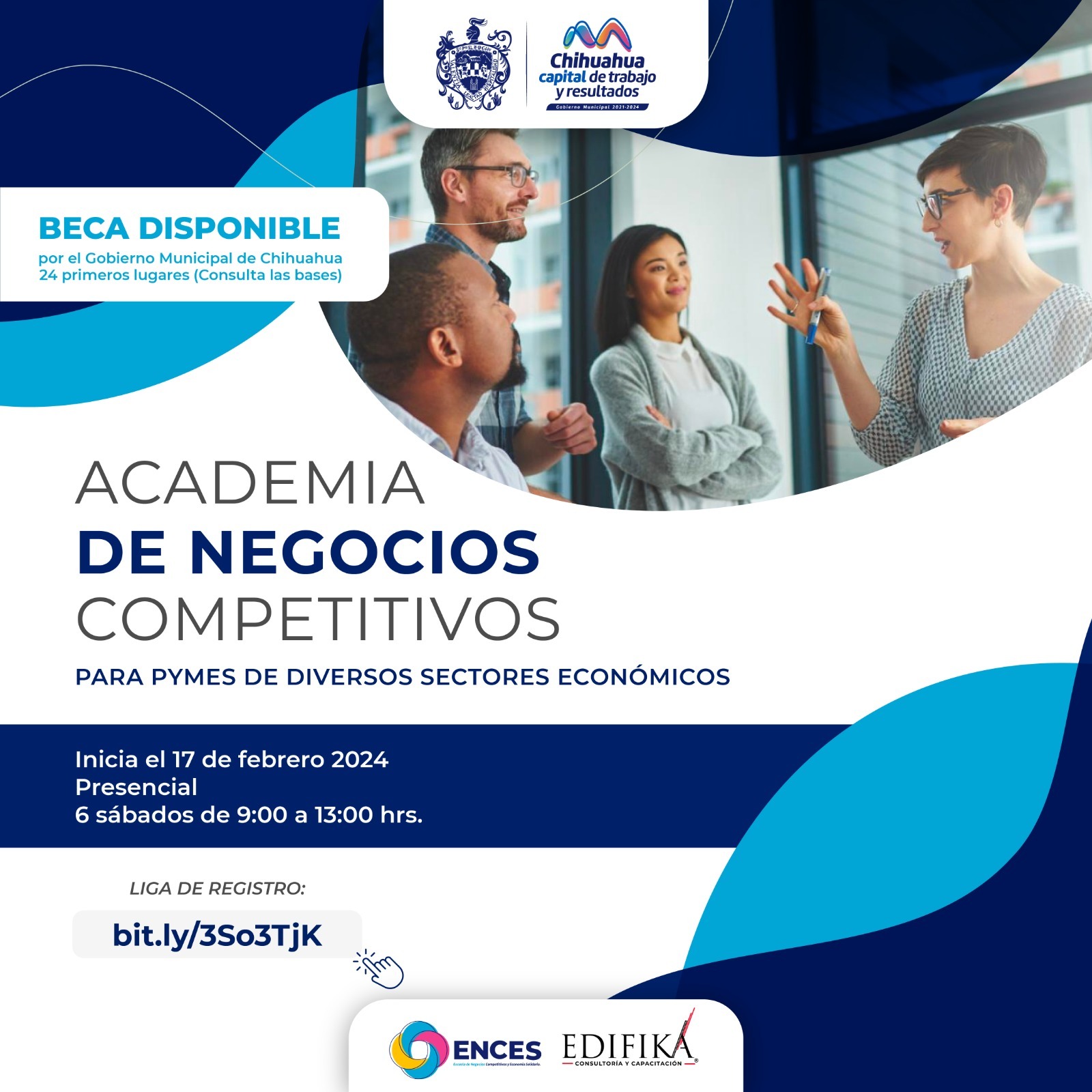Chihuahua, Chih. A 6 de febrero de 2024.- Para el alcalde Marco Bonilla la educación financiera es parte calve para potencializar el desarrollo económico de Chihuahua Capital, por ello el Gobierno Muincipal a través de su Escuela de Negocios Competitivos y Economía Solidaria (ENCES) y en colaboración con Edifika, invita a comerciantes y empresarios a formar parte de la Academia de Negocios Competitivos.