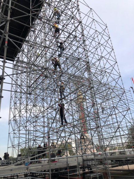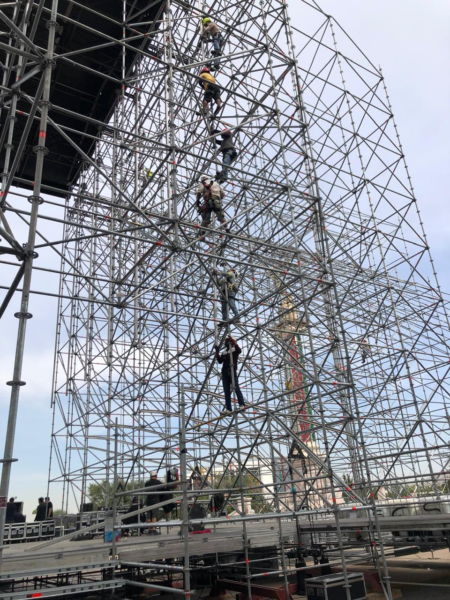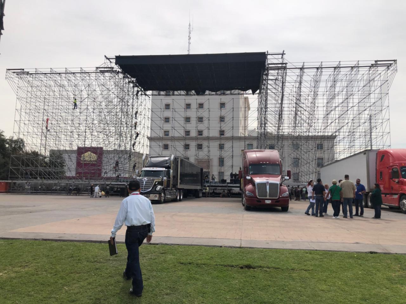 Gigantesco escenario toma forma en la Plaza del Ángel para el Grito de Independencia