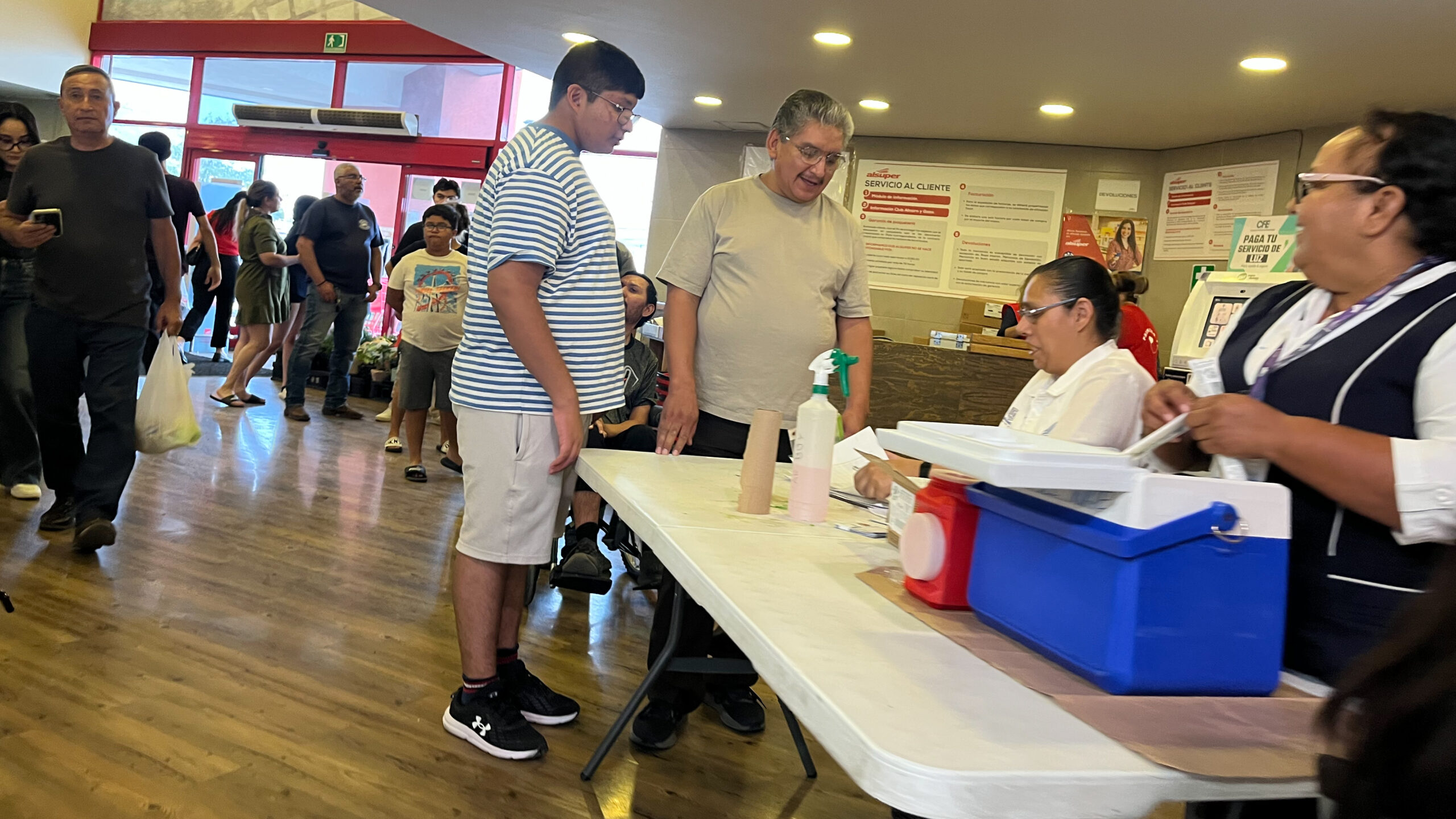 Hacen fila para vacunación contra el sarampión en Alsuper Romanzza