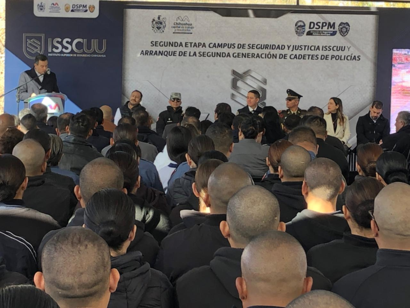 El alcalde Marco Bonilla Mendoza encabezó hoy la inauguración de la segunda etapa del Instituto Superior de Seguridad Chihuahua (ISSCUU), que incluyó la presentación de un innovador pueblo táctico y el inicio de la segunda generación de cadetes de policía.