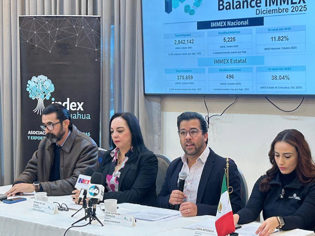 El sector exportador mexicano inició 2026 reafirmando su posición como motor económico y social del país, con cifras que ubican a Chihuahua como líder nacional en exportaciones IMEX y un modelo de desarrollo que combina competitividad industrial con impacto humano. Durante una rueda de prensa celebrada este viernes, René Espinosa Terrazas, presidente de Index Chihuahua, junto con Myrna de las Casas, directora general, y José Núñez, director de Recursos Humanos, presentaron un balance que destaca no solo el crecimiento económico, sino las historias de superación que respaldan los números.