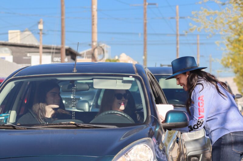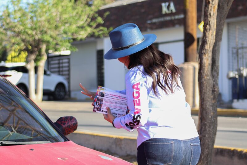 Joss Vega, candidata a Diputada del Distrito 15 por la Coalición “Juntos por el Bien de Chihuahua”, inició este día con un crucero -junto con sus brigadistas- en la intersección de las avenidas Francisco Villa y Américas de la Colonia Panamericana, desde las 7 horas en donde saludó a automovilistas que se desplazaban por el lugar.
