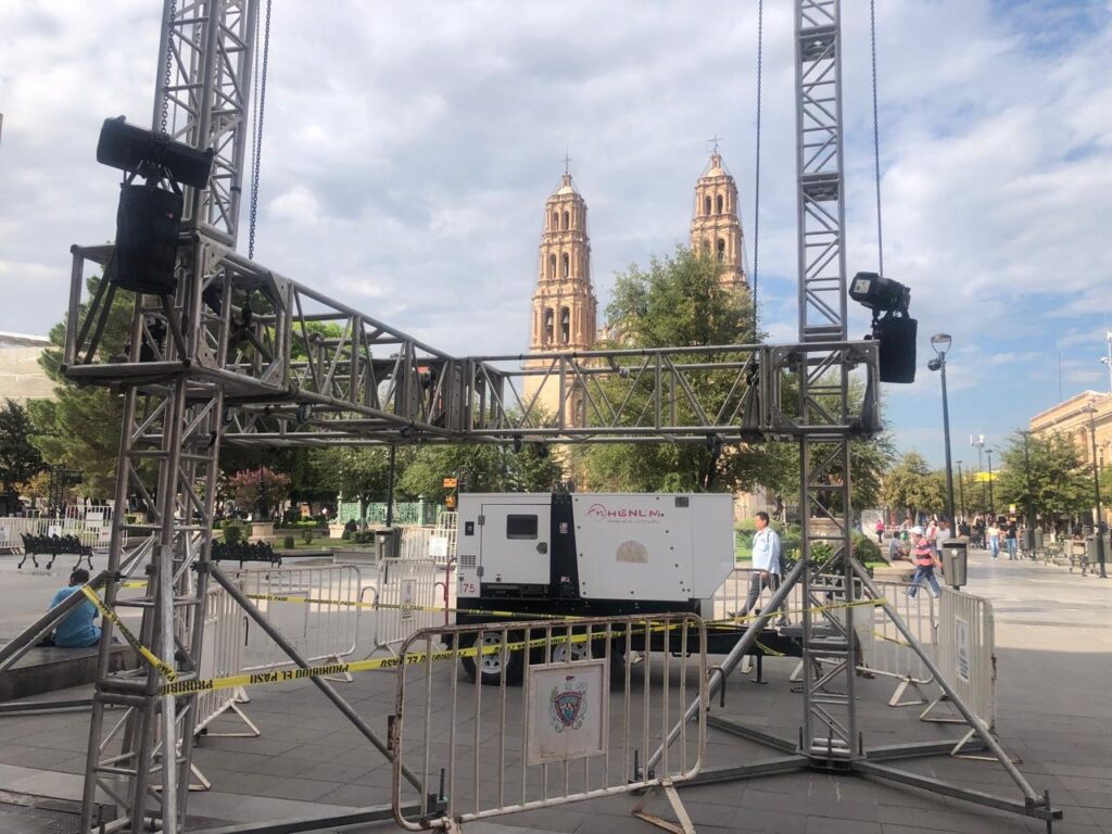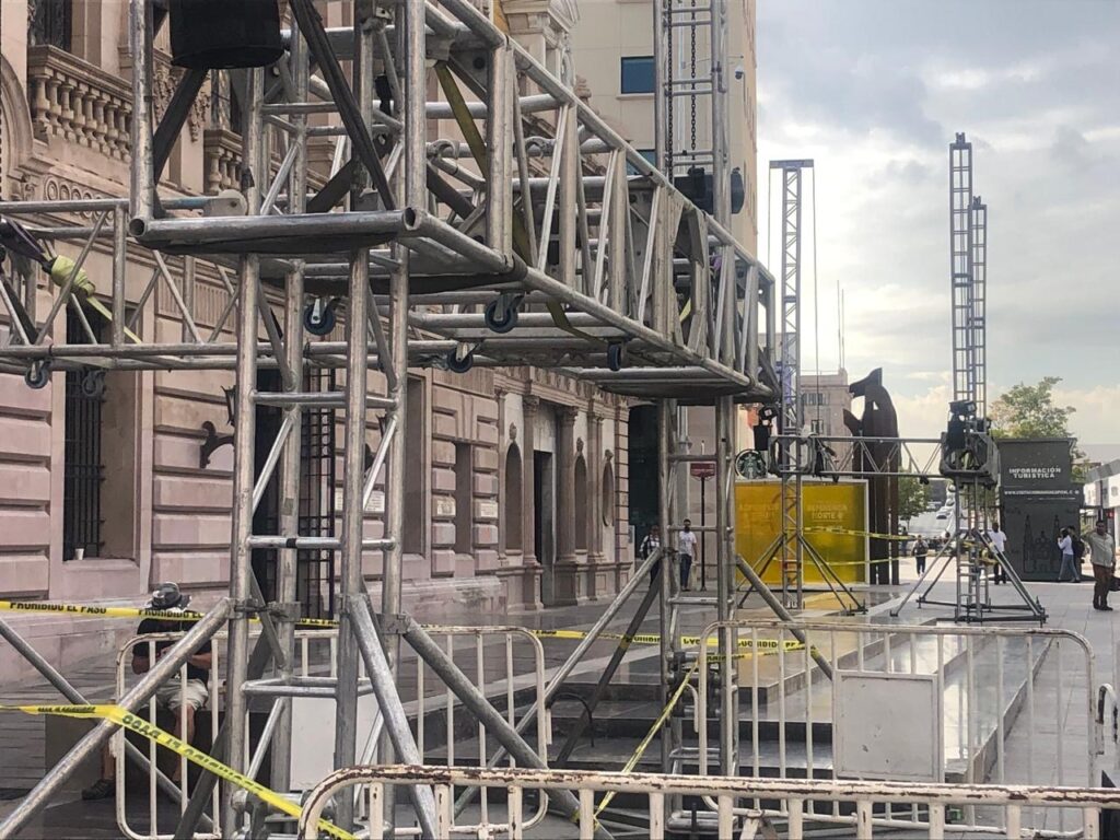 Desde las primeras horas de este viernes, cuadrillas de logística comenzaron la instalación del escenario principal frente a la Presidencia Municipal de Chihuahua, como parte de los preparativos para el festival Referencia Norte 2025, que se celebrará del 28 al 30 de agosto.