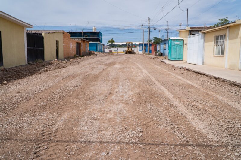 Con una inversión de 6 millones 806 mil pesos, se trabaja en la pavimentación de las calles América Latina, Dorados y Unidad entre calle Ernesto Espinoza y Lázaro Cárdenas, donde se realizan labores de excavaciones, rellenos, compactaciones y conformación de la base hidráulica.