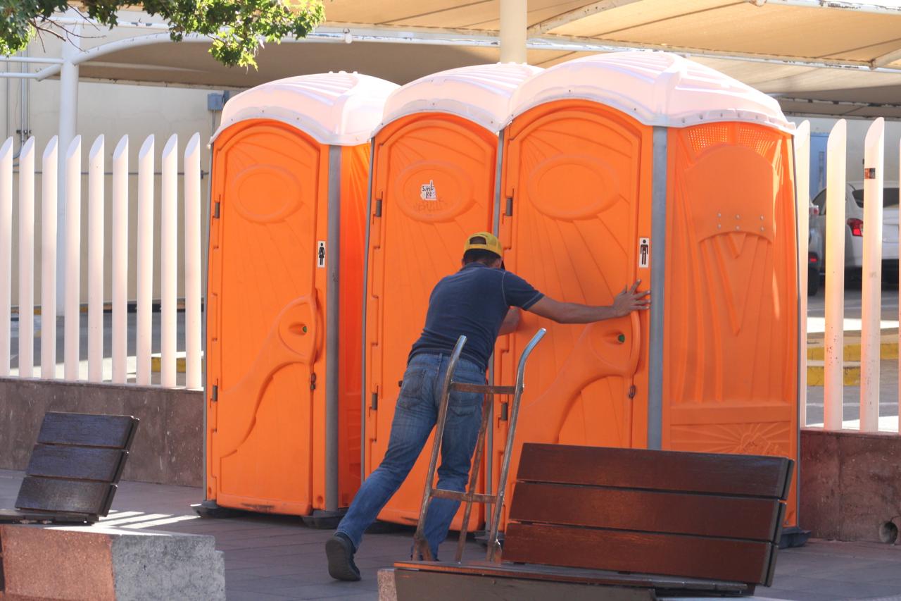 Instalan baños móviles para el FICUU Urbano 2025 en el centro de Chihuahua