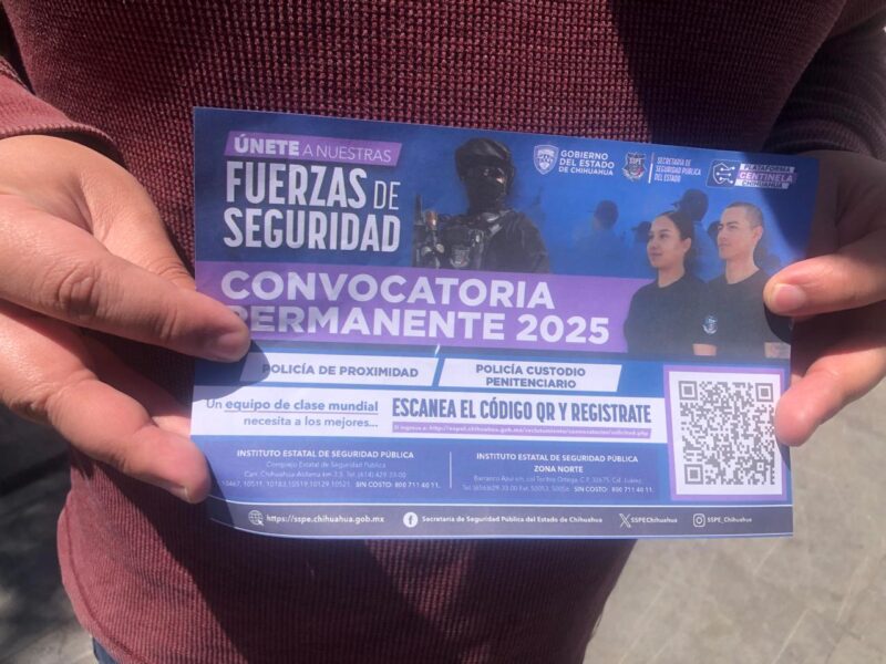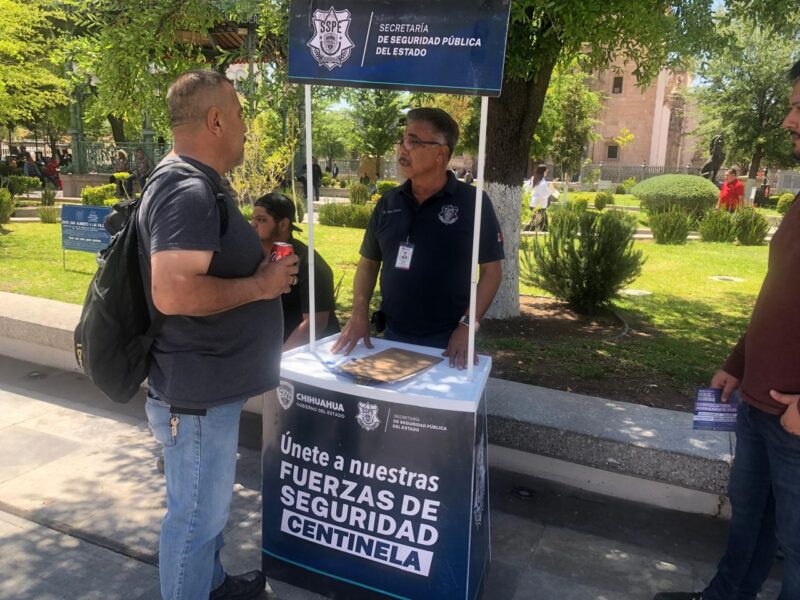 Este miércoles 9 de abril de 2025, un módulo itinerante de reclutamiento fue instalado en la Plaza de Armas , en el corazón de la ciudad de Chihuahua, como parte de los esfuerzos de la Secretaría de Seguridad Pública Estatal (SSPE) para contratar nuevos elementos que refuercen las filas de la policía de proximidad y los custodios del penal estatal “Los Ceresos” .