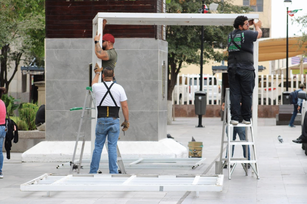 Instalan módulos en Plaza de Armas para el Festival Internacional Chihuahua 2025