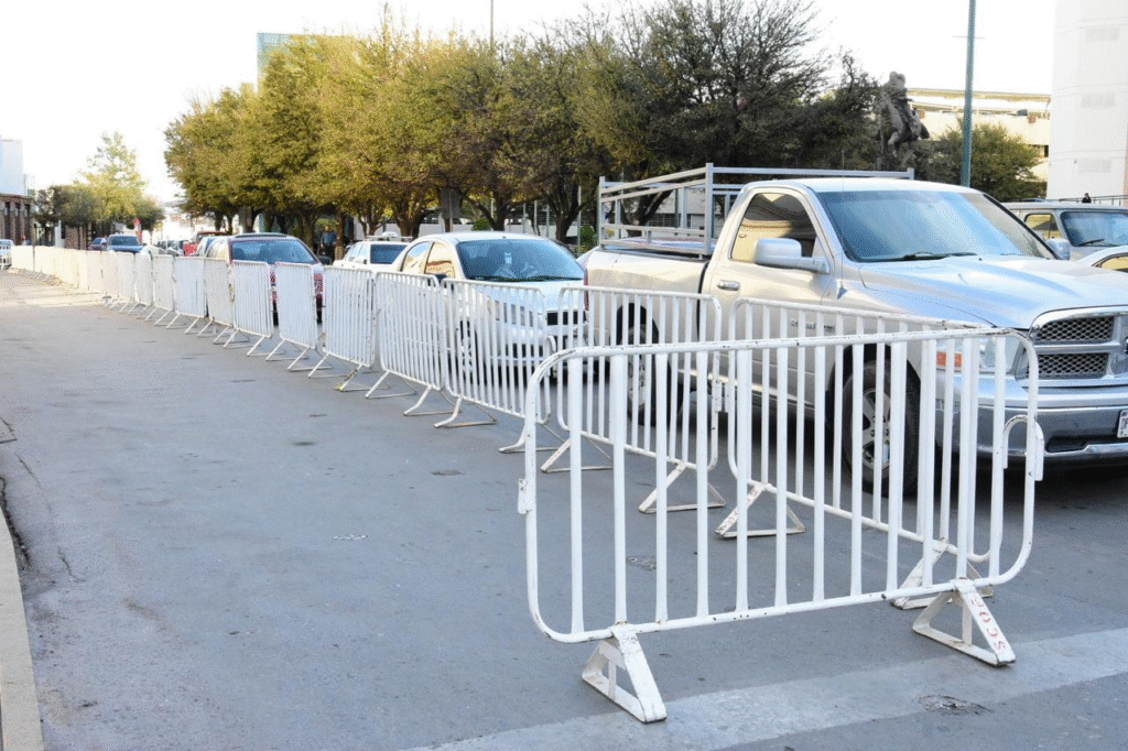 Desde este jueves se observaron vallas metálicas colocadas en distintos puntos del primer cuadro de la ciudad, principalmente en vialidades como Escorza, Aldama y Venustiano Carranza, donde personal comenzó a delimitar áreas cercanas a edificios públicos.