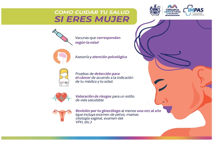 Chihuahua, Chih. A 4 de marzo de 2025.- En el marco del Día Mundial de la Mujer, el Gobierno Municipal de Chihuahua, a través del Instituto Municipal de Prevención y Atención a la Salud (IMPAS), invita a la todas las mujeres de la capital a conocer las medidas que deben tomarse para gozar de un estado de salud óptimo.