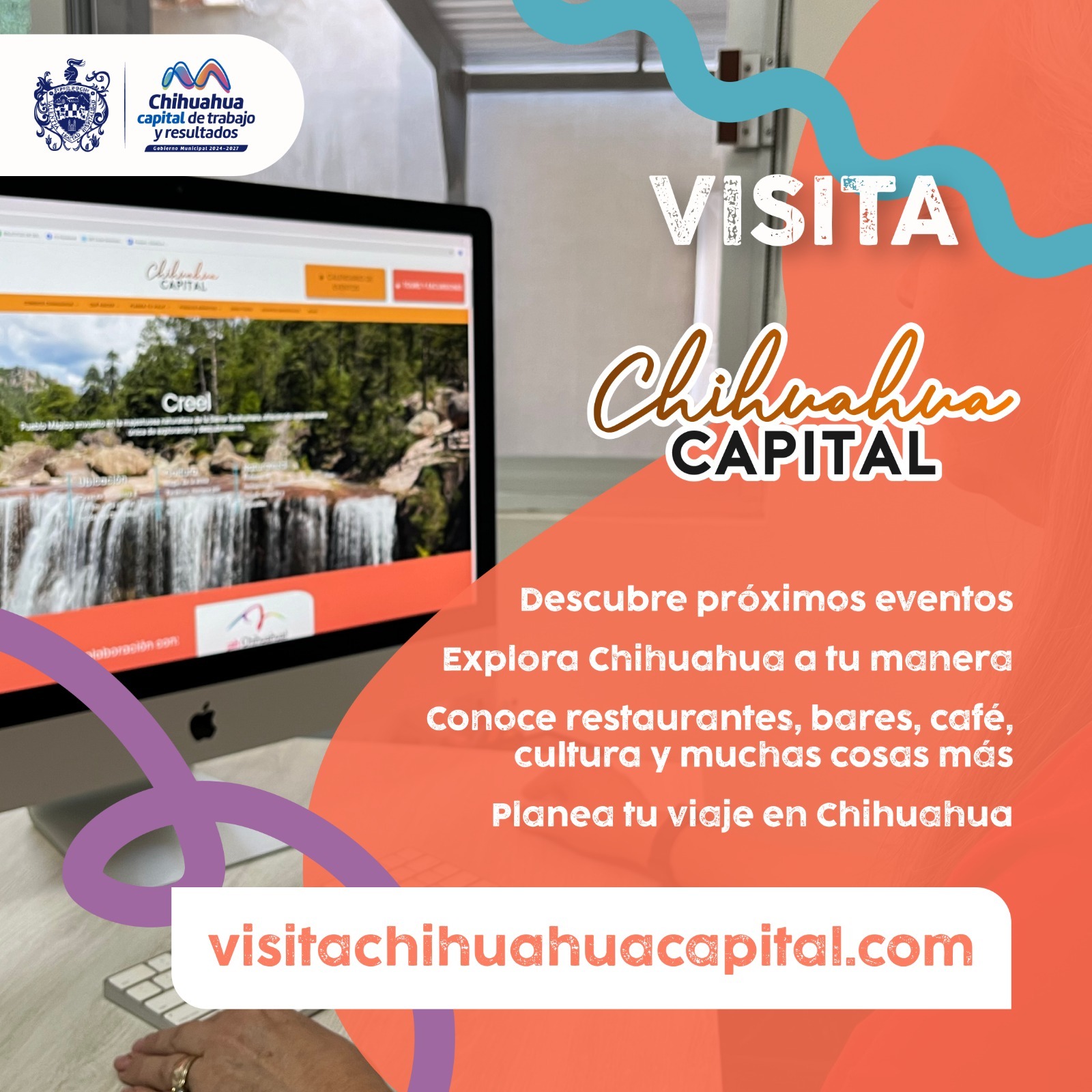 Chihuahua, Chih., a 13 de septiembre de 2024.- El Gobierno Municipal invita a visitar el sitio web Vista Chihuahua Capital: https://visitachihuahuacapital.com/, donde las y los ciudadanos, así como turistas que nos visitan, pueden conocer de una manera rápida y sencilla, la gran variedad de actividades que hay en la ciudad.