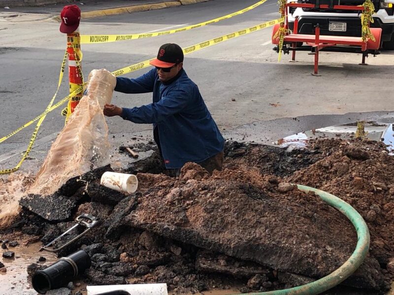 La Junta Municipal de Agua y Saneamiento (JMAS) de Chihuahua respondió con prontitud a una fuga de agua potable que se registró en la intersección de la calle Séptima y calle Aldama en el corazón del centro de la ciudad.