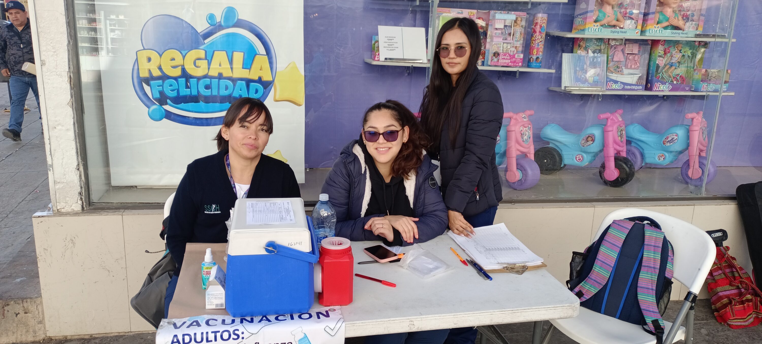 Esta mañana de jueves, personal del sector salud se encuentra ofreciendo una jornada de vacunación gratuita en la calle Libertad, esquina con la tienda Woolworth, en el centro de la ciudad.