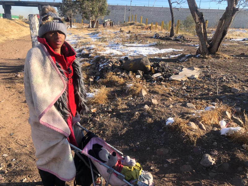 En el campamento improvisado, la joven enfrenta las inclemencias del tiempo sin los recursos básicos necesarios. “Faltan cobijas, chamarras y comida”, menciona cuando se le pregunta sobre sus necesidades inmediatas. Las bajas temperaturas que azotan la capital chihuahuense hacen más difícil su situación.