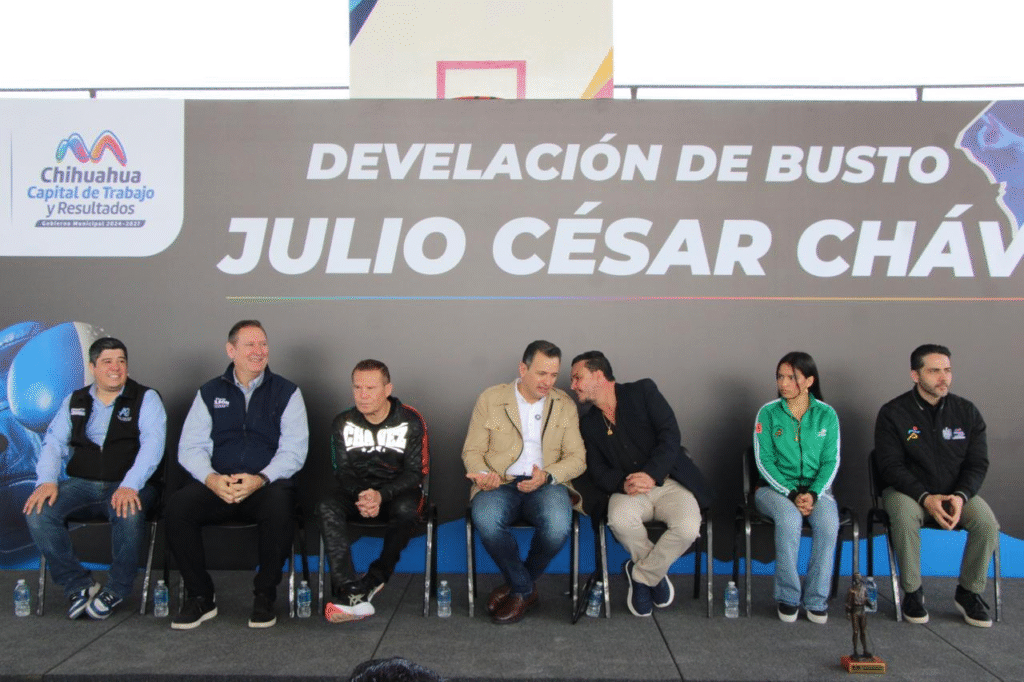 El polideportivo Luis H. Álvarez fue escenario de un emotivo homenaje al leyenda del boxeo mexicano, Julio César Chávez González, quien acompañó al presidente municipal de Chihuahua, Marco Bonilla Mendoza, y a la primera dama y presidenta del DIF Municipal, licenciada Karina Olivas, en la develación de un busto en su honor. El evento, organizado por el Consejo Directivo de la Asociación Nacional para la Protección (ANAPROMEX) y promovido por el licenciado Fidel Villanueva Ramírez, reunió a autoridades, deportistas, familias y representantes de gimnasios municipales de Chihuahua, Ciudad Juárez, Cuauhtémoc, Madera y Aldama.