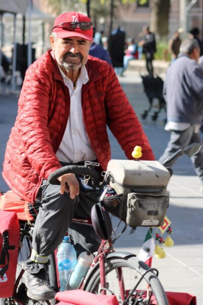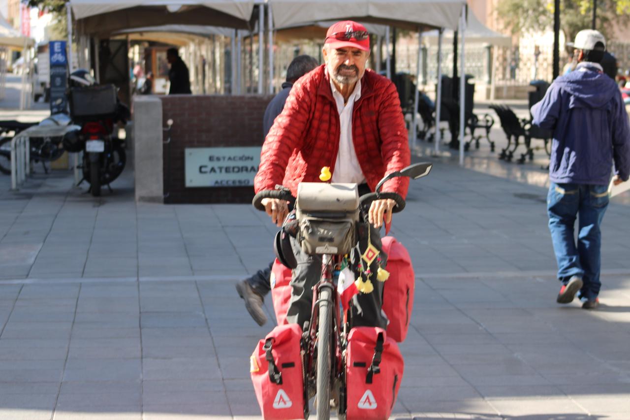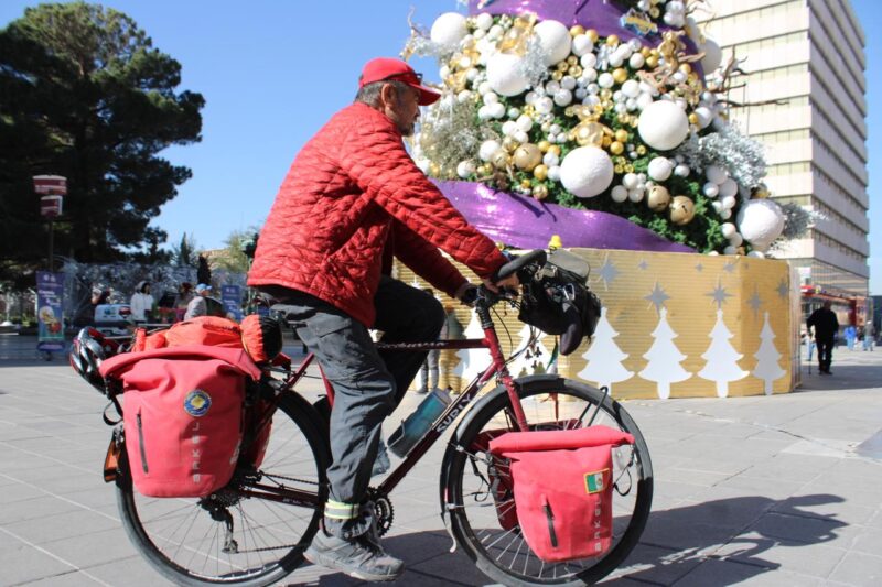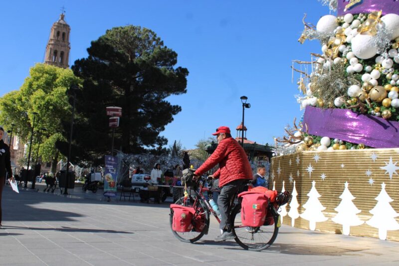 En su paso por la Plaza de Armas de Chihuahua capital, Hermán Paredes, un viajero de 67 años originario de Guatamampo, Sonora, compartió su extraordinaria aventura recorriendo México en bicicleta, un viaje que comenzó en enero de 2021 en la Ciudad de México y que está próximo a culminar.