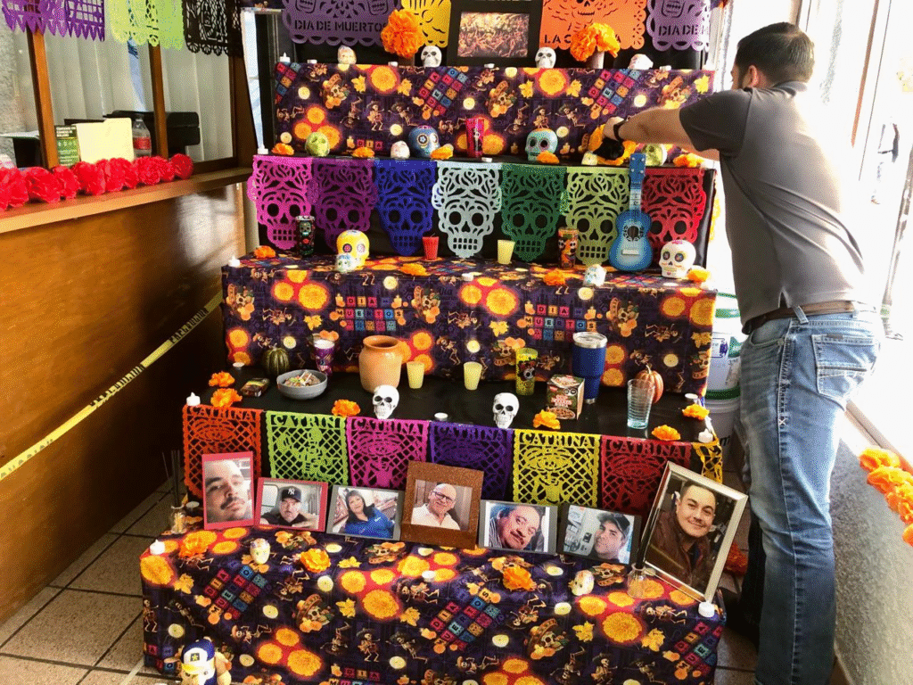 Entre las calles Victoria y Séptima, en el Centro Histórico de la ciudad, la tradición del Día de Muertos ya cobra vida. Luis Fernando Valle Talamantes, empleado de Refriación Lozano, confirmó que desde hace tres o cuatro días, los trabajadores de la empresa se han dedicado a montar su altar de muertos, un homenaje anual a los compañeros que ya no están.