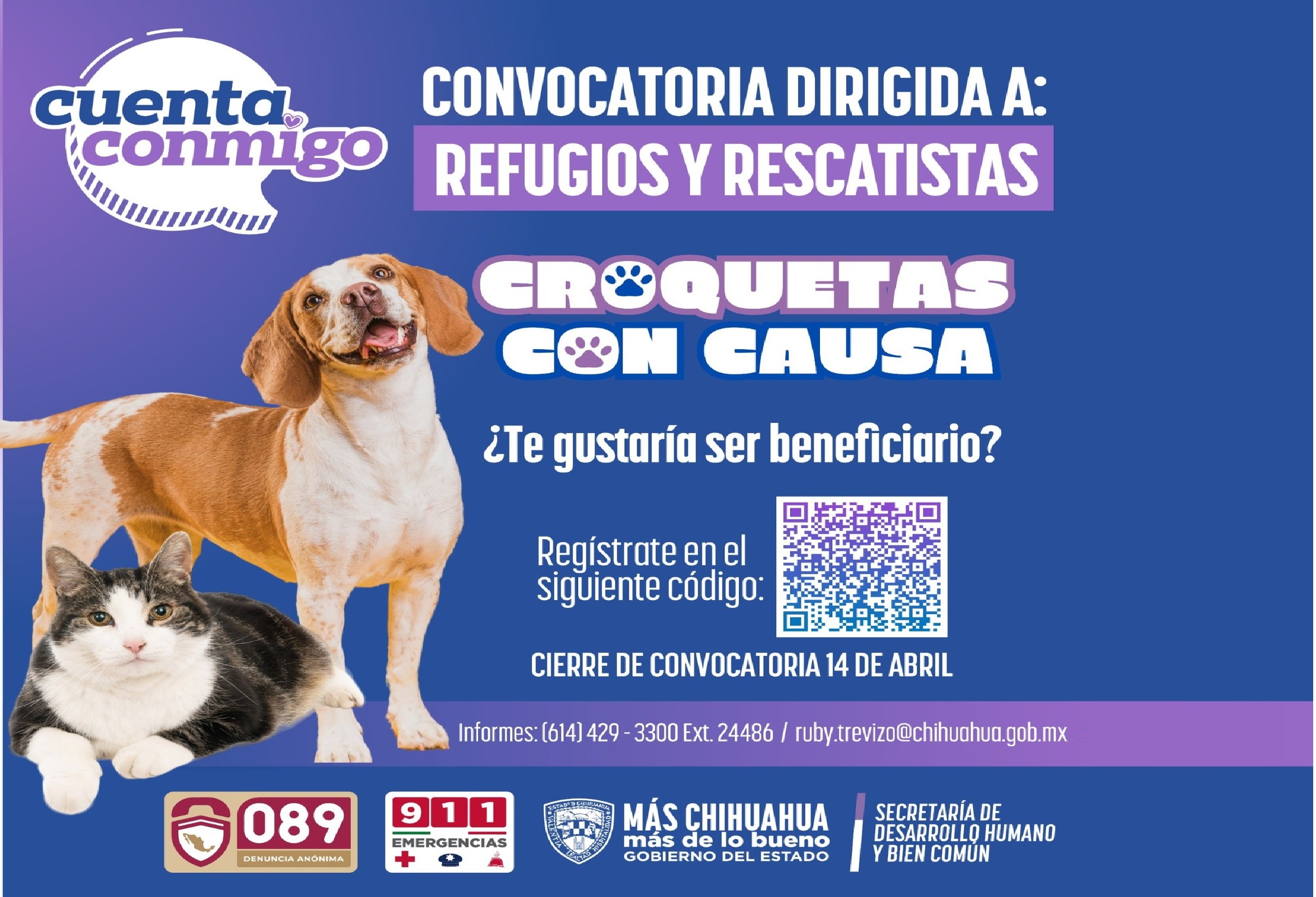La Secretaría de Desarrollo Humano y Bien Común (SDHyBC) invita a los refugios y rescatistas de animales del estado a participar en la convocatoria “Croquetas con Causa”, dirigida a quienes estén interesados en recibir apoyo con alimento para mascotas.