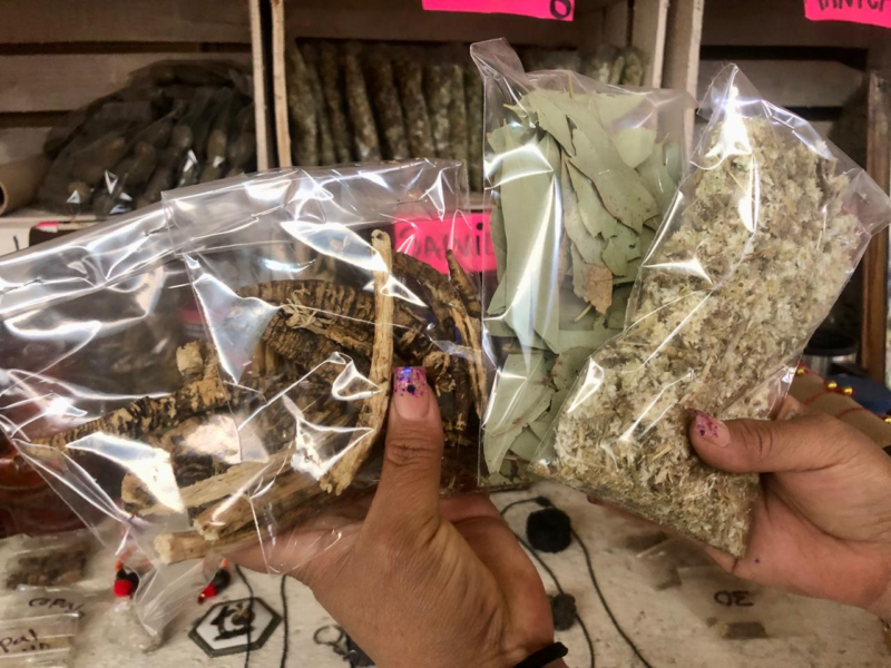 En la Hierbería Zamora también se vende miel de abeja, conocida por sus propiedades antibacterianas y su uso como endulzante natural. Además, ofrecen pirul, utilizado en rituales de limpia. “Se cuece, se usa para baños y se acompaña de oraciones”, explica Zamora sobre su aplicación espiritual.
