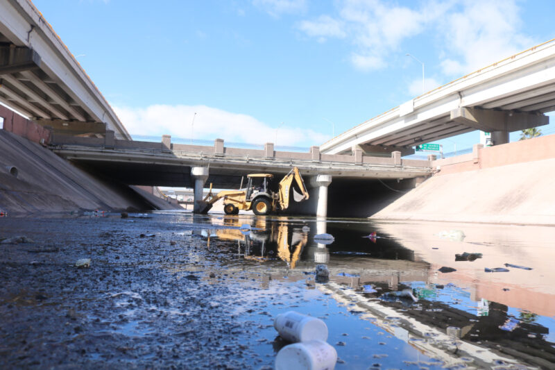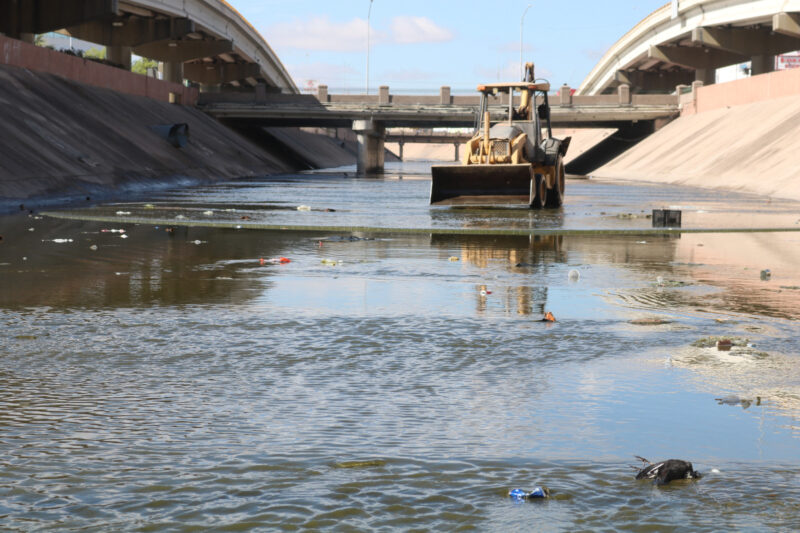 Chihuahua, Chih. A 21 de marzo de 2024.- Con el objetivo de evitar inundaciones, así como acumulación de basura, el Gobierno Municipal, a través de la Dirección de Servicios Públicos Municipales, lleva a cabo la limpieza del canal Chuviscar dos veces por semana.