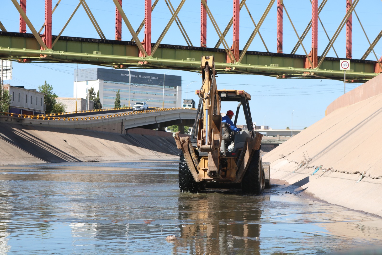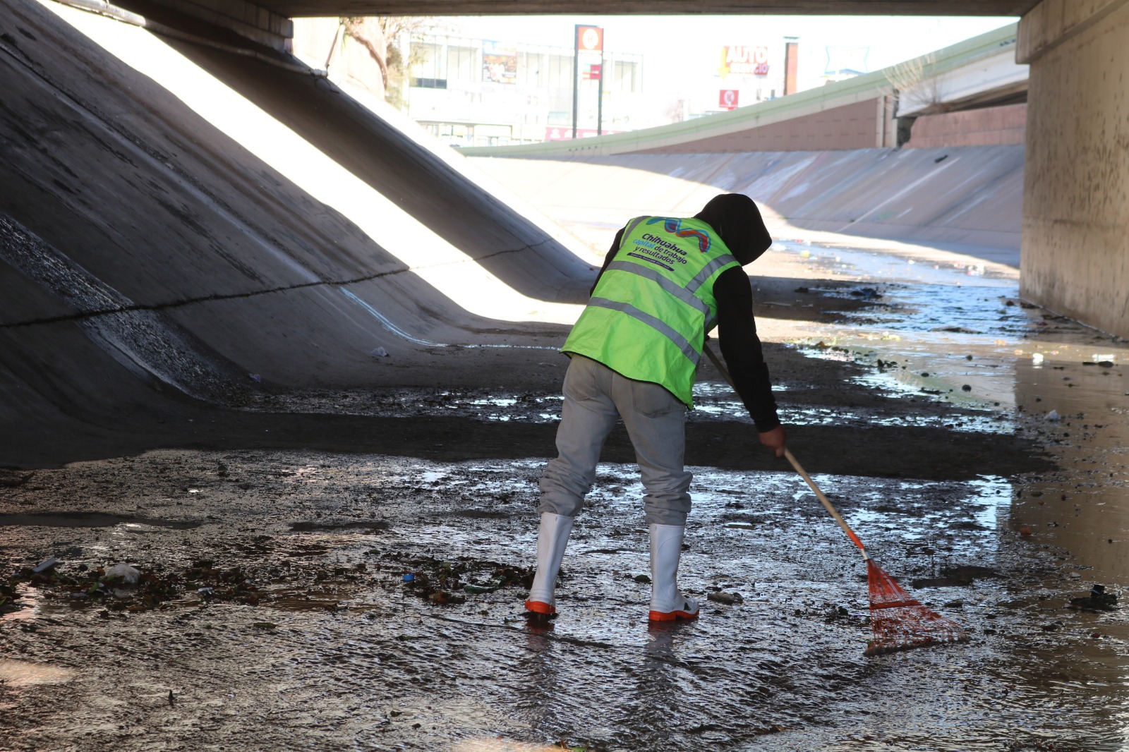 Chihuahua, Chih. A 18 de enero de 2024.- Con el objetivo de mantener una buena imagen urbana, el Gobierno Municipal, a través de la Dirección de Servicios Públicos Municipales, lleva a cabo la limpieza del canal Chuviscar, al menos dos veces por semana.