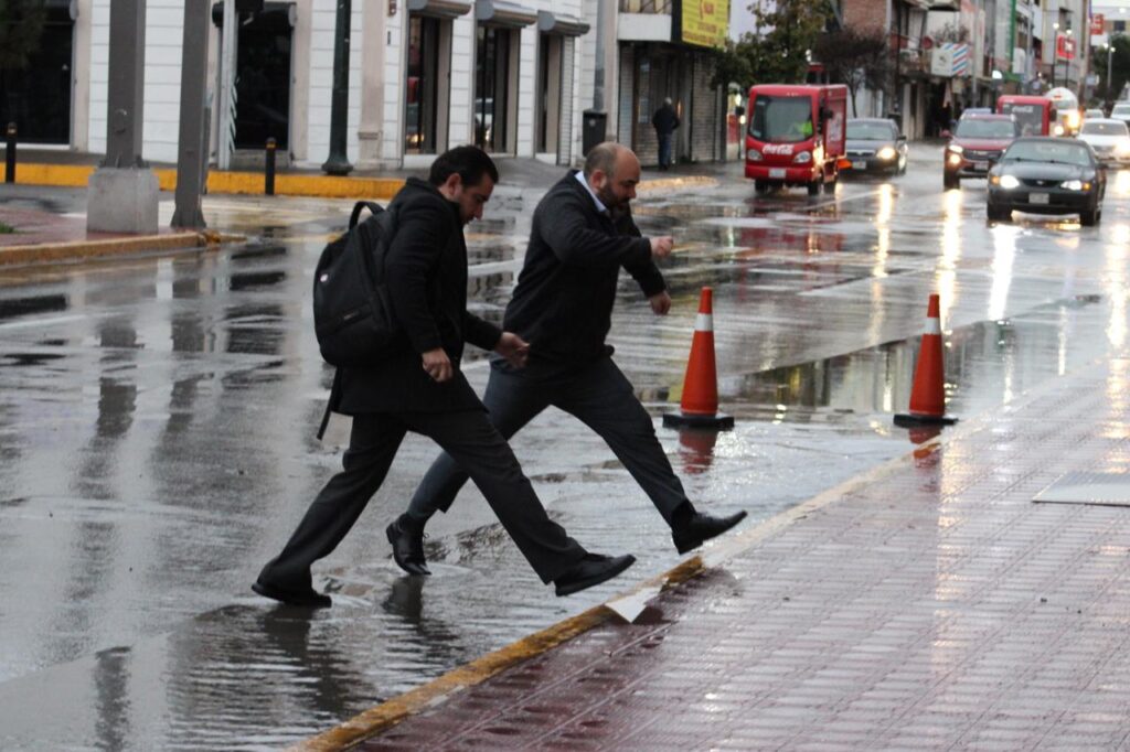 Esta mañana, los capitalinos se enfrentan a un escenario típico de temporada lluviosa: personas brincando charcos, esquivando a los autos que al pasar a toda velocidad arrojan agua al cruzar los charcos acumulados. Muchos transitan con paraguas abiertos, abrigados y algunos con impermeables, buscando protegerse del agua y el frío que persiste desde la madrugada.