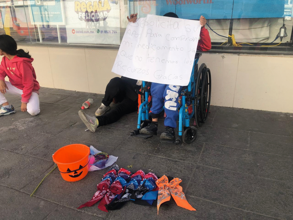Madre pide apoyo para su hijo Jesús Manuel, quien padece microcefalia, a las afueras de Woolworth en Chihuahua