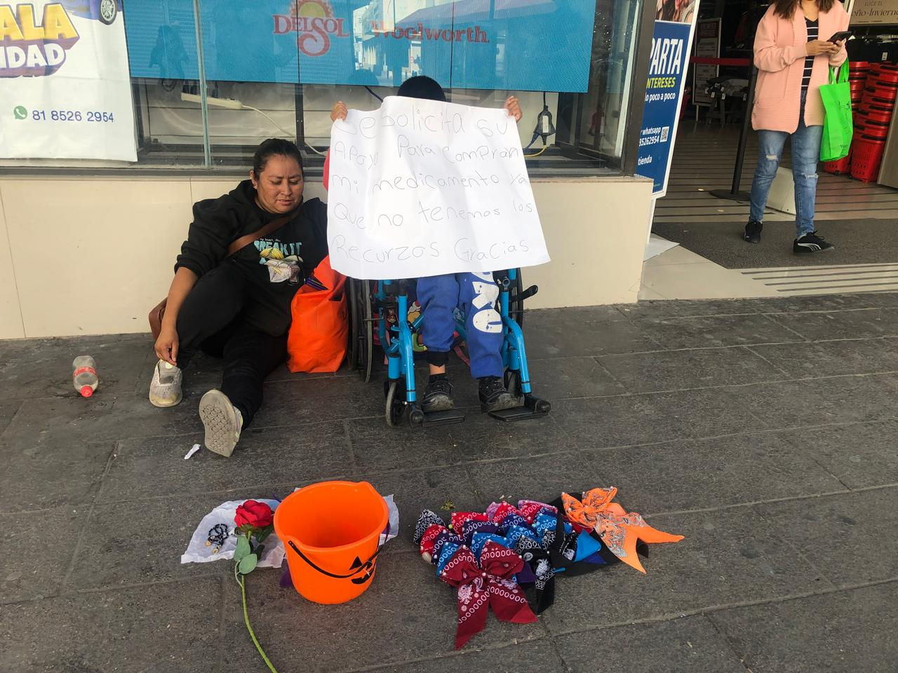 Almadelia, una madre que cuida a tiempo completo a su hijo Jesús Manuel Pineda, de 8 años, quien padece microcefalia, se encuentra solicitando apoyo económico a las afueras de la tienda Woolworth, ubicada en la calle Libertad, en el centro de la ciudad. La mujer, quien no puede trabajar debido a las necesidades constantes de atención de su hijo, enfrenta dificultades para costear los 4,000 pesos que gasta cada quince días en medicinas esenciales para su tratamiento.